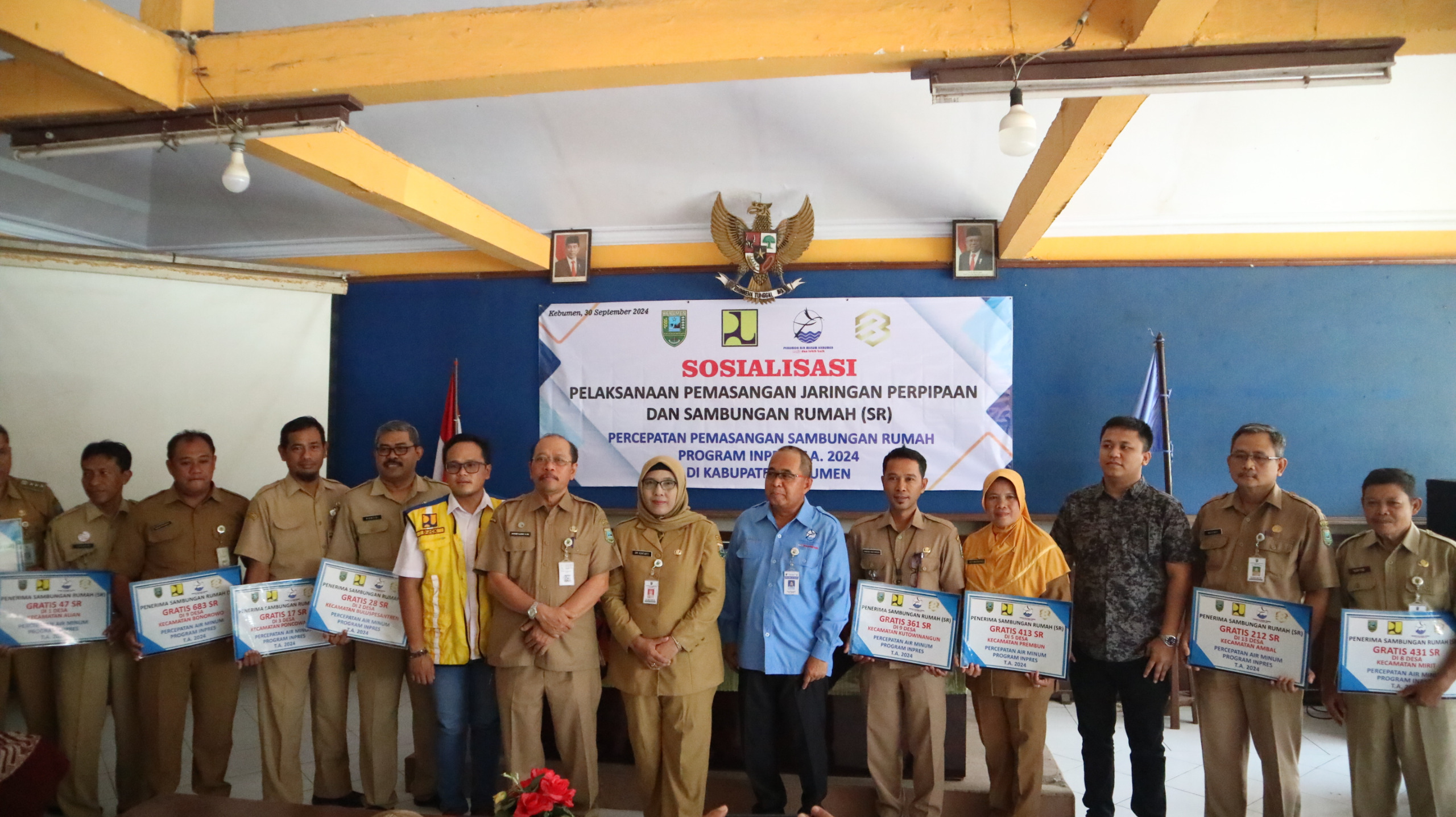 KUTOWINANGUN, kilaskebumen.com – Perumda Air Minum Tirta Bumi Sentosa menggelar sosialisasi pemasangan jaringan pipa dan 3.865 sambungan rumah gratis di Pendopo Kecamatan Kutowinangun pada Senin 30 September 2024.