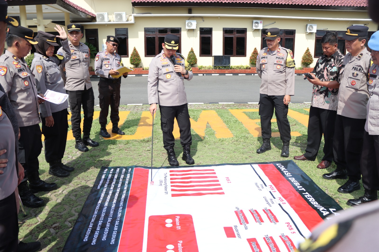 KEBUMEN, kilaskebumen.com – Dalam rangka mempersiapkan pengamanan debat terbuka antar pasangan calon (paslon) Bupati dan Wakil Bupati Kebumen putaran kedua, Polres Kebumen menggelar Tactical Floor Game (TFG).