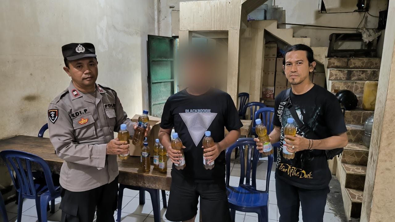 Dalam operasi tersebut, aparat mengamankan puluhan botol miras yang ditemukan di beberapa lokasi di rumah warga dan sejumlah warung.