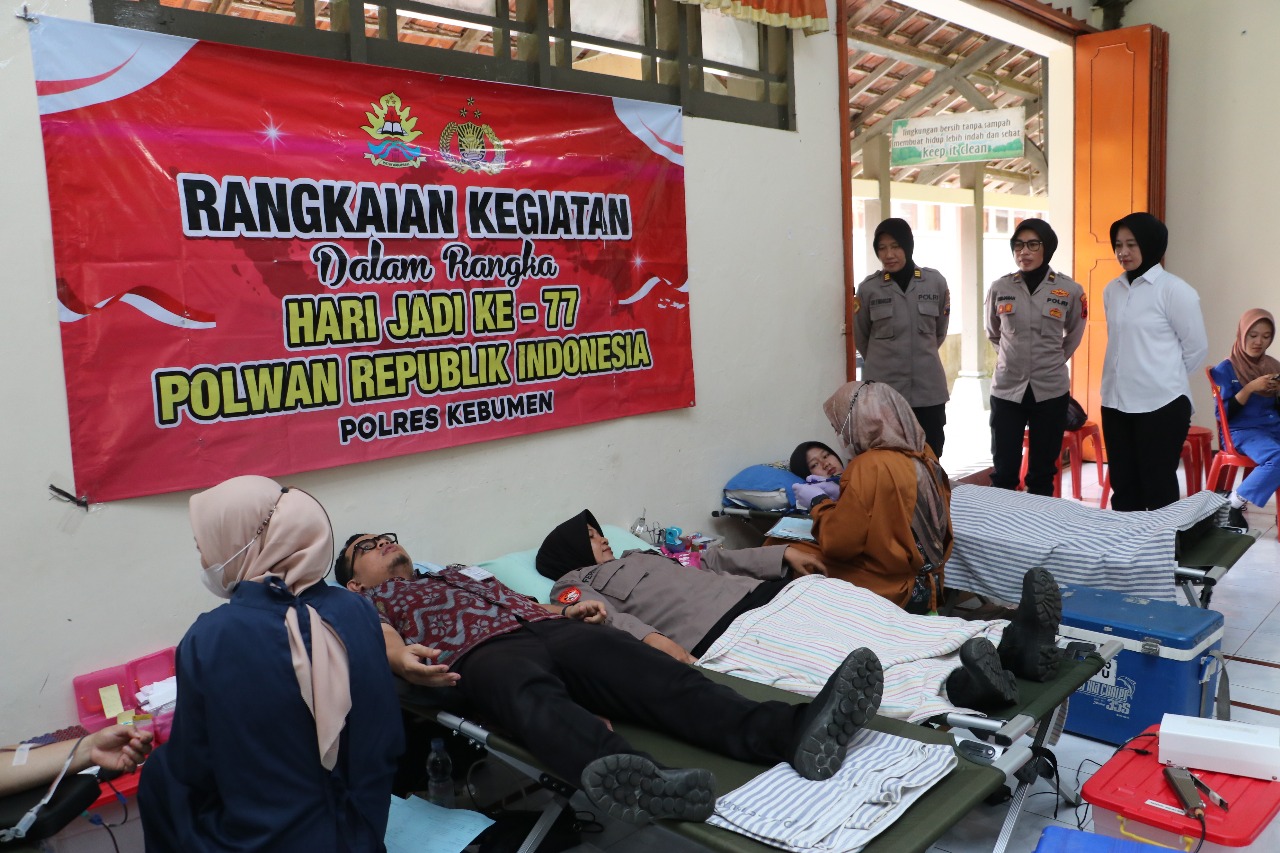 Bekerja sama dengan Palang Merah Indonesia (PMI) Kabupaten Kebumen, kegiatan donor darah diikuti oleh 43 personel Polwan Polres Kebumen. Selain sebagai bentuk pengabdian, kegiatan ini diharapkan dapat membantu memenuhi kebutuhan darah di wilayah Kabupaten Kebumen.