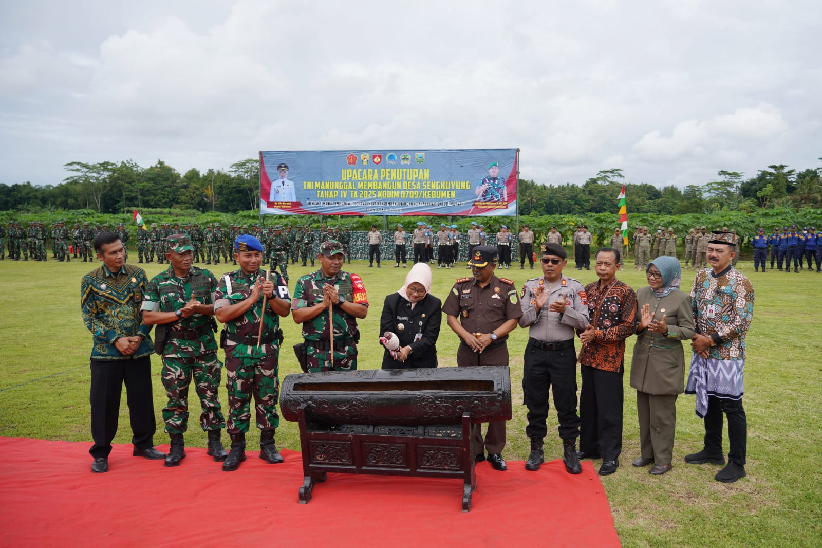 BULUSPESANTREN, Kilaskebumen.com – Program TNI Manunggal Membangun Desa (TMMD) Sengkuyung Tahap IV Tahun Anggaran 2025 Kodim 0709 Kebumen secara resmi ditutup.