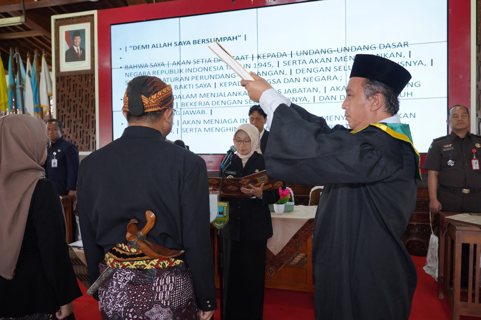 Acara pelantikan yang digelar di Pendopo Kabumian ini meliputi pengisian tiga jabatan eselon II hasil seleksi terbuka Jabatan Pimpinan Tinggi (JPT) Pratama, serta 13 pejabat administrator lainnya.