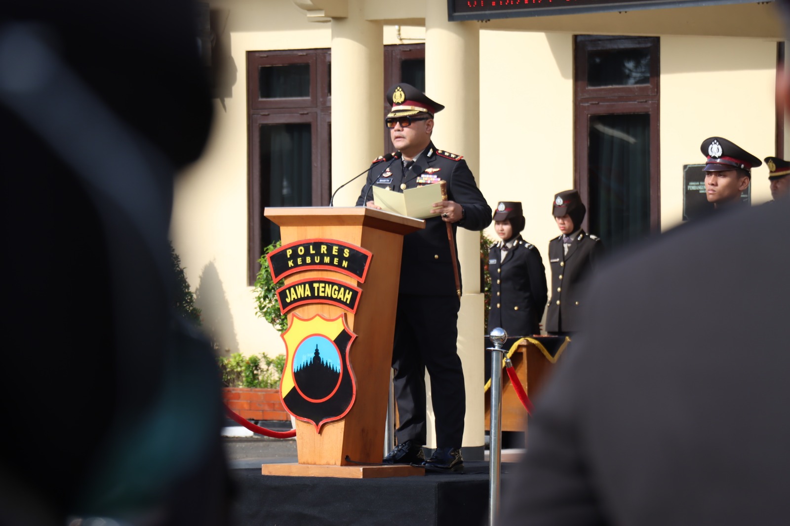 Kapolres Kebumen AKBP Eka Baasith Syamsuri bertindak sebagai inspektur upacara. Kegiatan tersebut diikuti Wakapolres Kebumen Kompol Faris Budiman, para pejabat utama, kapolsek jajaran, perwira staf, serta bintara dan aparatur sipil negara (ASN) Polres Kebumen.