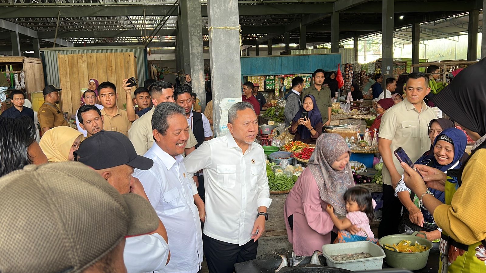 Setibanya di lokasi, Menko Pangan Zulkifli Hasan langsung meninjau ketersediaan stok dan stabilitas harga komoditas pangan menjelang perayaan Natal dan Tahun Baru (Nataru).
