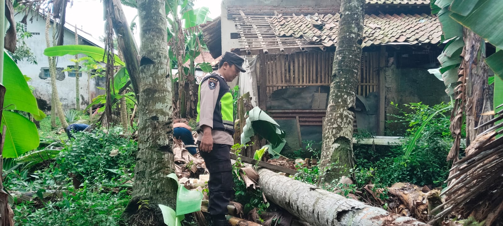 Petugas kepolisian bersama instansi terkait dan masyarakat setempat membantu proses evakuasi pohon serta penanganan awal di lokasi kejadian.