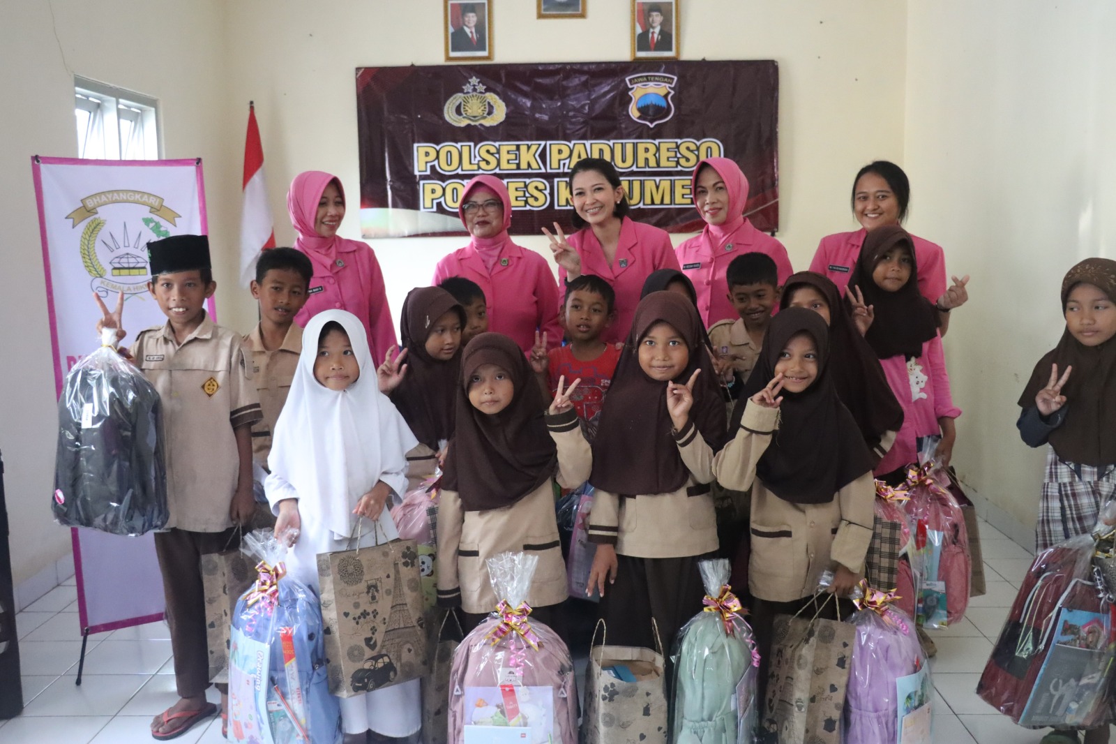 Dalam kegiatan tersebut, Kapolres menyerahkan bantuan berupa tas, sepatu, serta peralatan sekolah kepada belasan murid. Ia didampingi Ketua Bhayangkari Cabang Kebumen Ny Uwit Putu Krisna, para pejabat utama Polres Kebumen, serta pengurus Bhayangkari.
