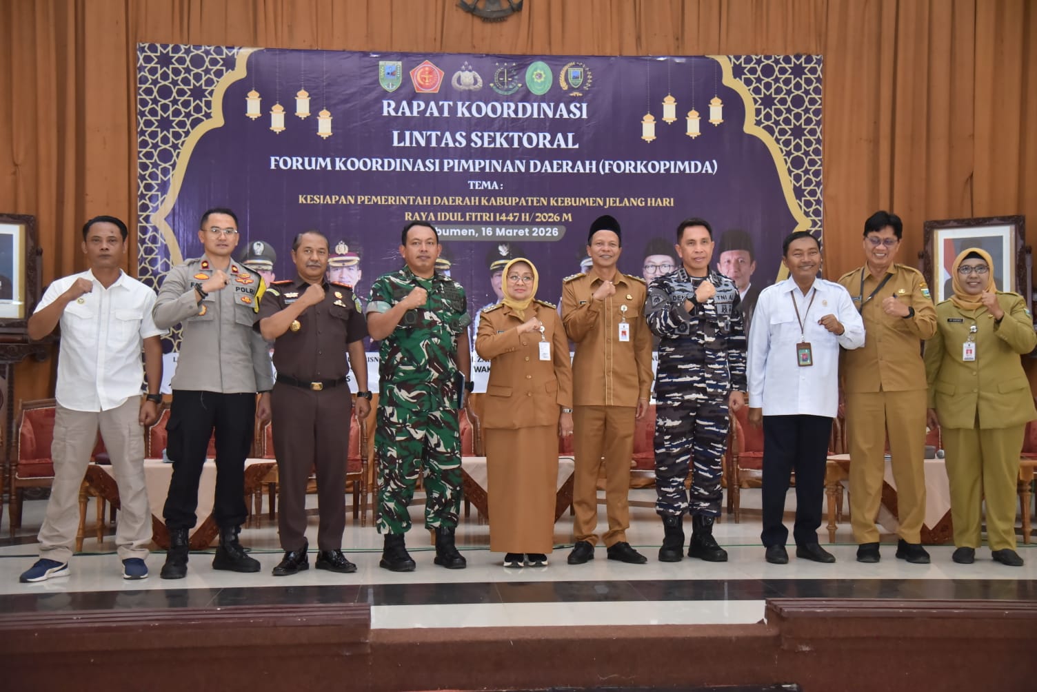 KEBUMEN, Kilaskebumen.com – Pemerintah Kabupaten Kebumen menggelar Rapat Koordinasi Lintas Sektoral Forkopimda di Gedung Pertemuan Setda, Senin 16 Maret 2026. Rapat ini bertujuan memantapkan kesiapan seluruh instansi terkait dalam menghadapi arus mudik dan perayaan Idul Fitri 1447 H.